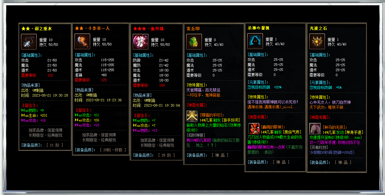 胜天神剑 300RMB 胜天神甲(衣) 200RMB